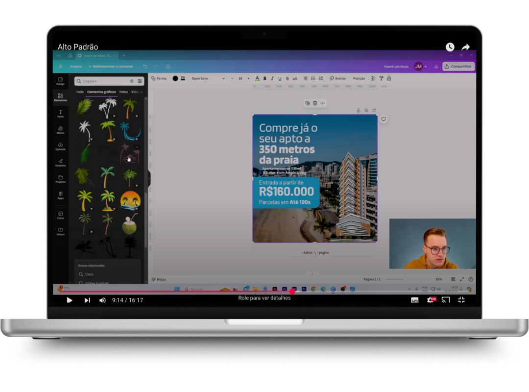 Já criei centenas de artes e campanhas que movimentaram milhares de reais em lançamentos, captação de leads e vendas diretas, especialmente no litoral catarinense, como Itapema, Porto Belo e Balneário Camboriú.