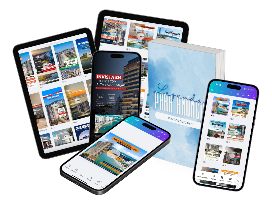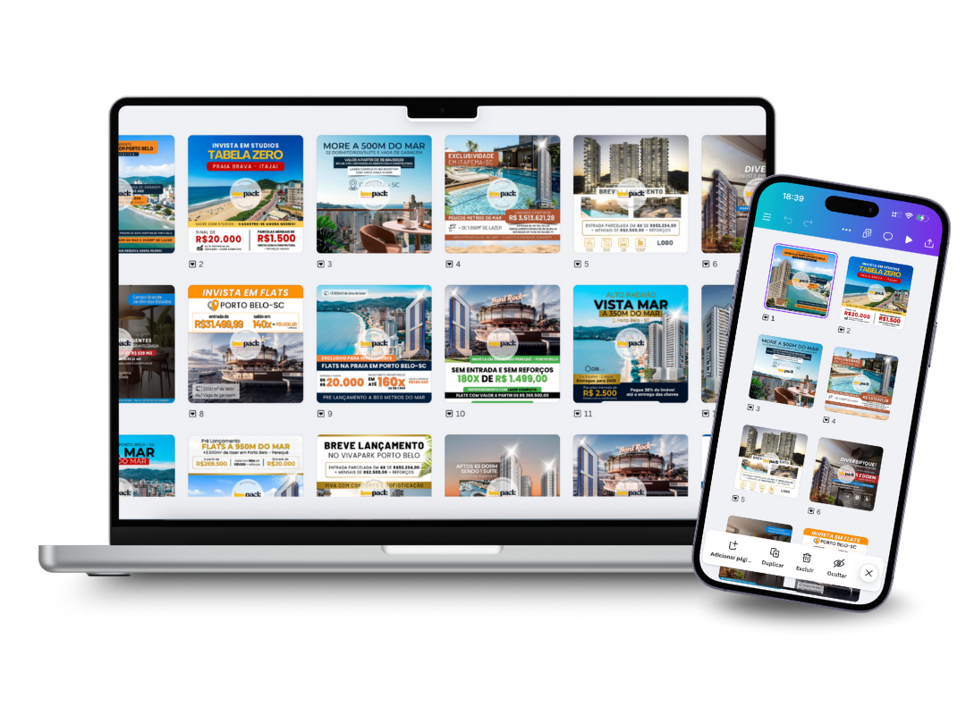 Ideal para corretores e imobiliárias que querem economizar tempo e atrair mais clientes com artes profissionais e prontas para editar com acesso vitalício!